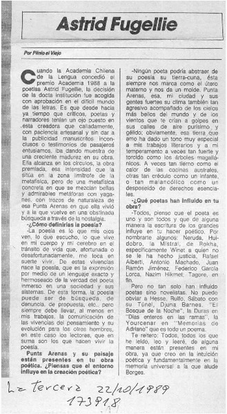 El silencio denunciante de escritora Astrid Fugellie : [entrevista] [artículo].