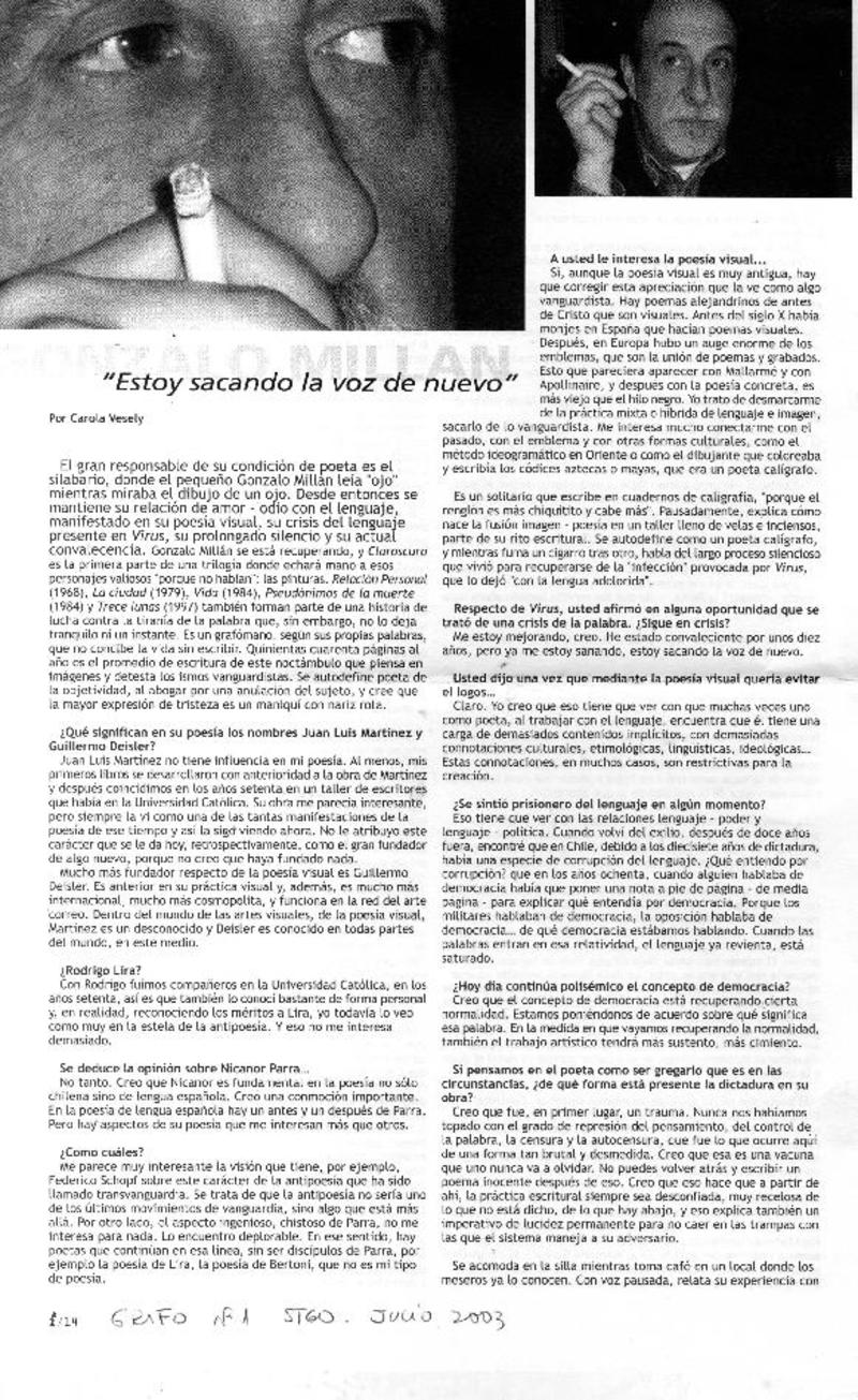 Autores chilenos - Millán, Gonzalo - Entrevista