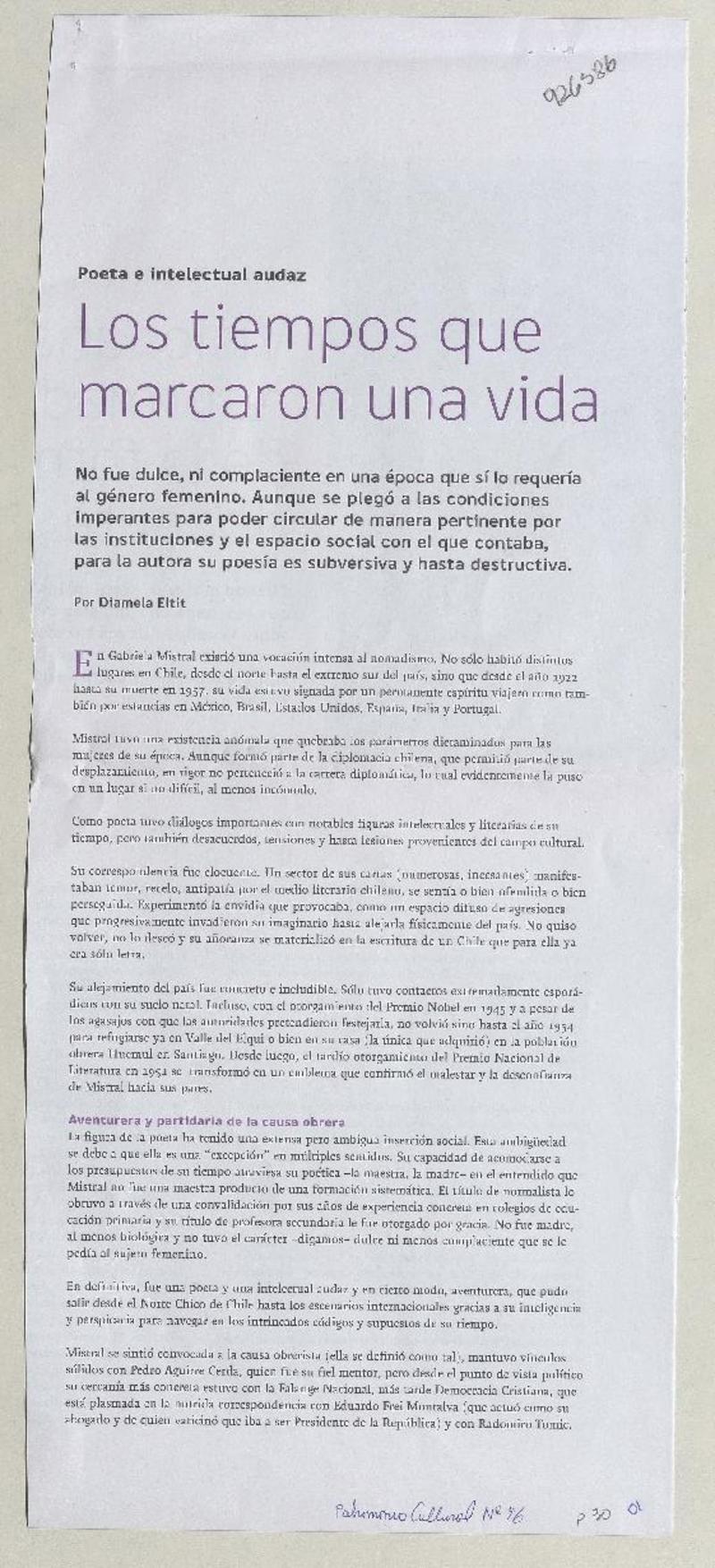 Los tiempos que marcaron una vida [artículo] Diamela Eltit.