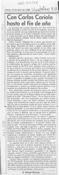 Con Carlos Cariola hasta el fin de año [artículo] Wilfredo Mayorga.