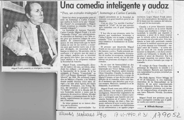 Una comedia inteligente y audaz [artículo] Wilfredo Mayorga.