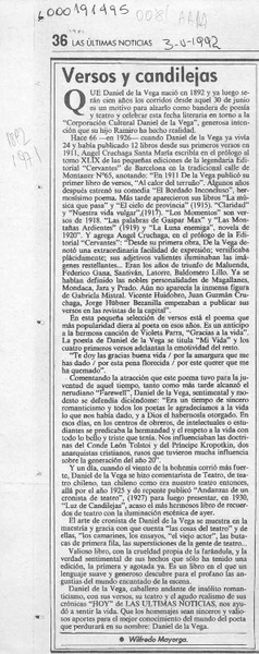 Daniel de la Vega, la verdad de una leyenda [artículo] Wilfredo Mayorga.