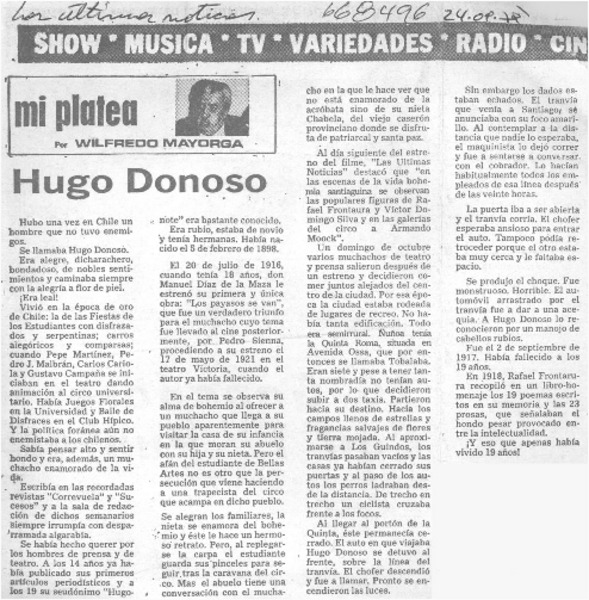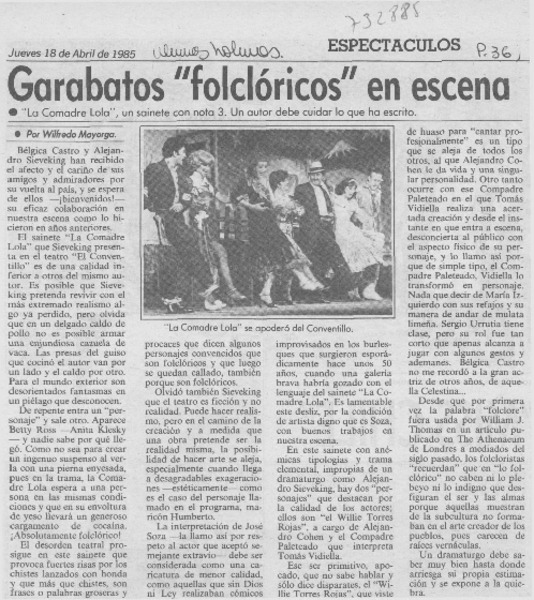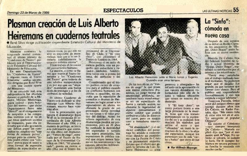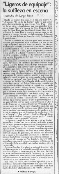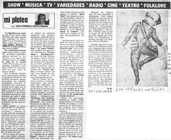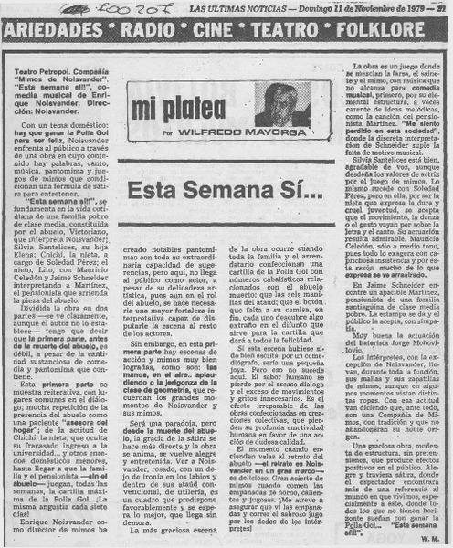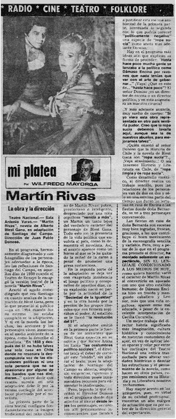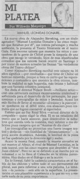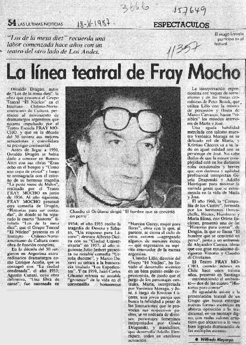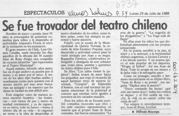 Se fue trovador del teatro chileno [artículo] Wilfredo Mayorga.