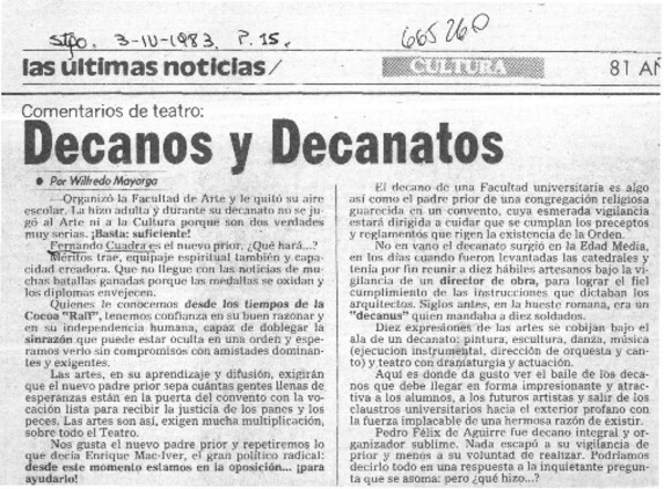 Decanos y decanatos [artículo] Wilfredo Mayorga.