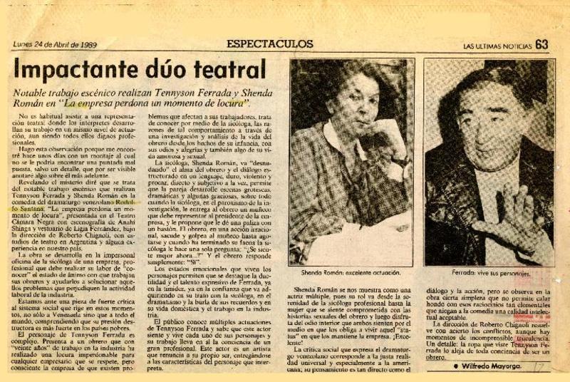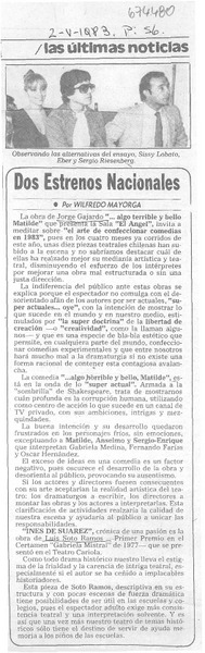 Dos estrenos nacionales [artículo] Wilfredo Mayorga.