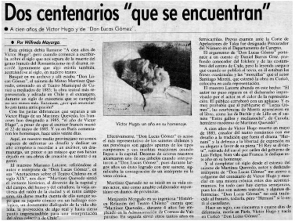 Autores chilenos - Morgado, Benjamín - Latorre, Mariano - Martínez Quevedo, Mateo - Histórica relación del teatro chileno - Gómez Negro, Lucas - Anotaciones sobre el teatro chileno en el sigo XIX - Víctor Hugo