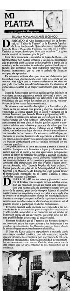 Escuela popular de arte escénico [artículo] Wilfredo Mayorga.