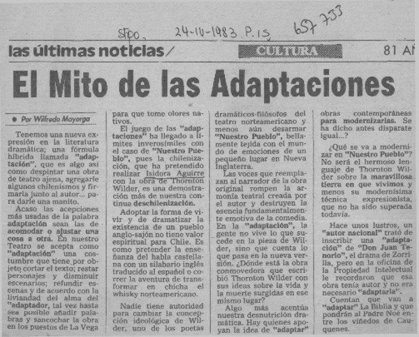 El Mito de las adaptaciones. [artículo] WIlfredo Mayorga