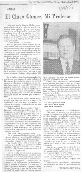 El chico Gómez, mi profesor [artículo] Wilfredo Mayorga.