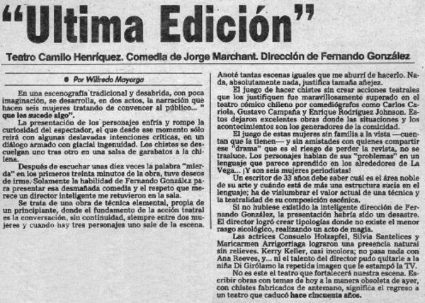 Ultima edición" [artículo] Wilfredo Mayorga.
