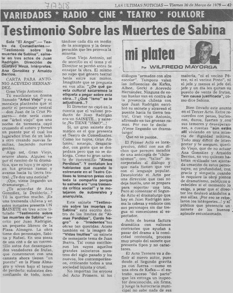 Testimonio sobre las muertes de Sabina [artículo] Wilfredo Mayorga.