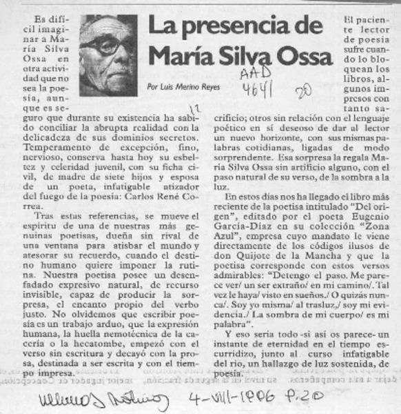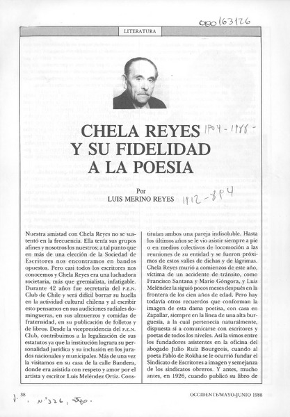 Chela Reyes y su fidelidad a la poesía [artículo] Luis Merino Reyes.