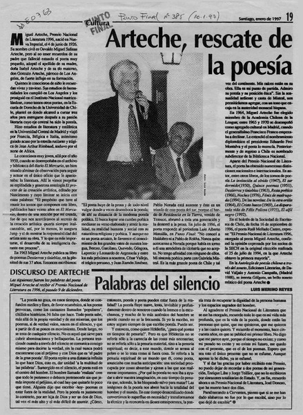 Arteche, rescate de la poesía [artículo] Luis Merino Reyes.