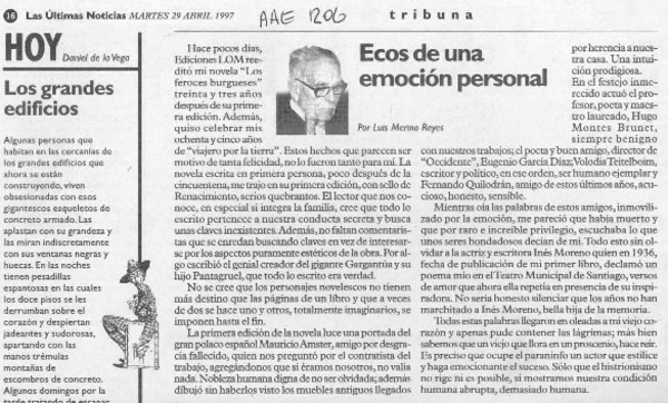 Ecos de una emoción personal [artículo] Luis Merino Reyes.