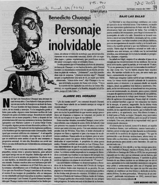 Testimonios inevitables [artículo] Luis Merino Reyes.