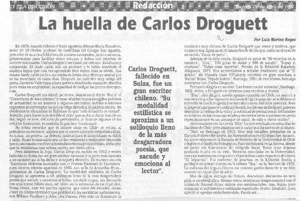 El difícil Carlos Droguett [artículo] Luis Merino Reyes.
