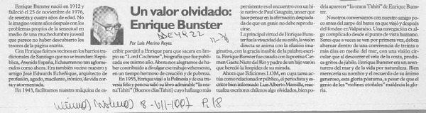 Un valor olvidado, Enrique Bunster [artículo] Luis Merino Reyes.