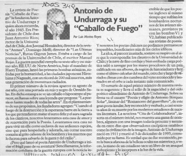 Antonio de Undurraga y su "Caballo de fuego" [artículo] Luis Merino Reyes.