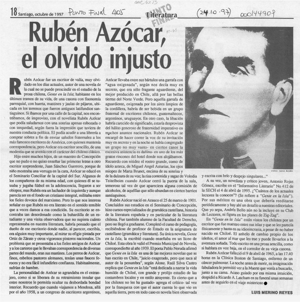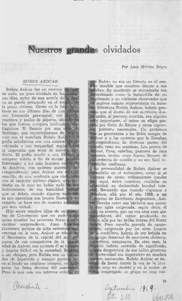 Rubén Azócar, el olvido injusto [artículo] Luis Merino Reyes.