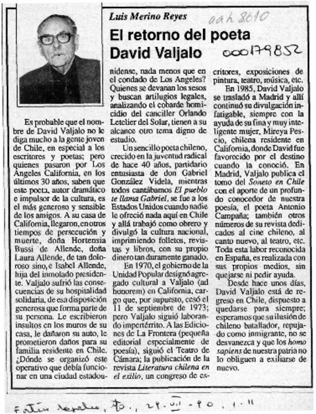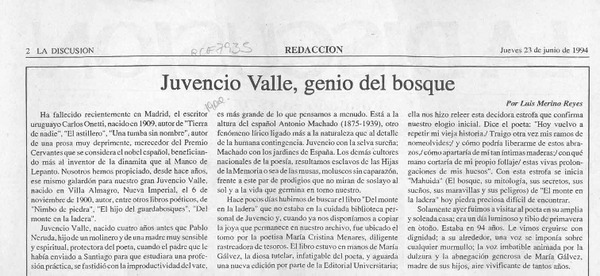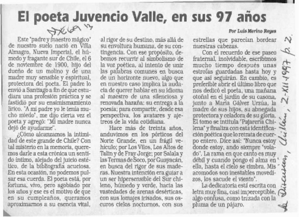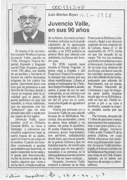 El poeta Juvencio Valle, a sus 97 años [artículo] Luis Merino Reyes.