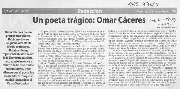 Un poeta trágico, Omar Cáceres [artículo] Luis Merino Reyes.
