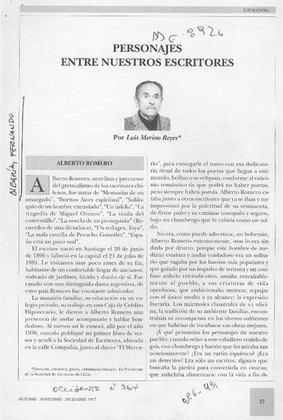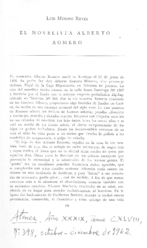El novelista Alberto Romero [artículo] Luis Merino Reyes.