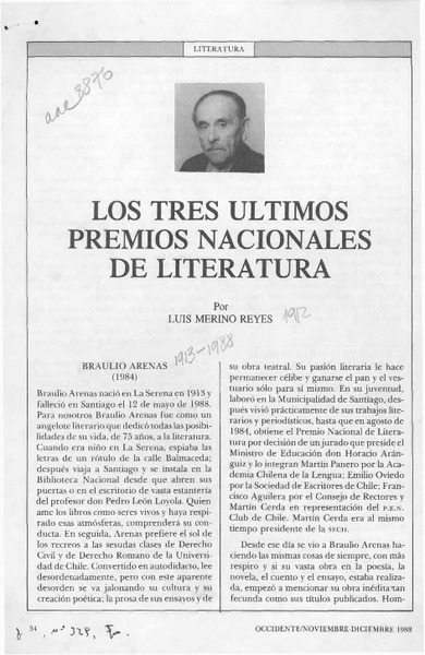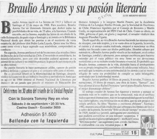 Braulio Arenas y su pasión literaria [artículo] Luis Merino Reyes