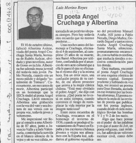 El poeta Angel Cruchaga y Albertina [artículo] Luis Merino Reyes.