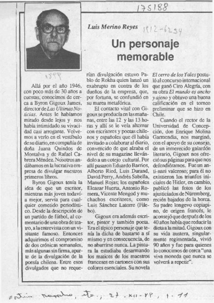 Un personaje memorable [artículo] Luis Merino Reyes.