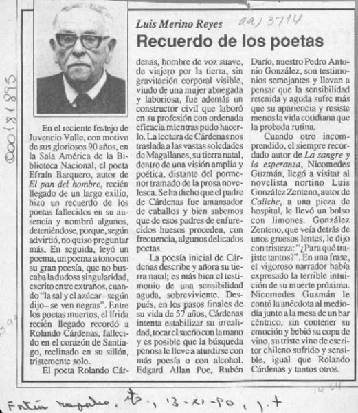 Un poeta inolvidable [artículo] Luis Merino Reyes
