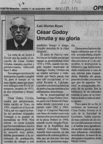 César Godoy Urrutia [artículo] Luis Merino Reyes.