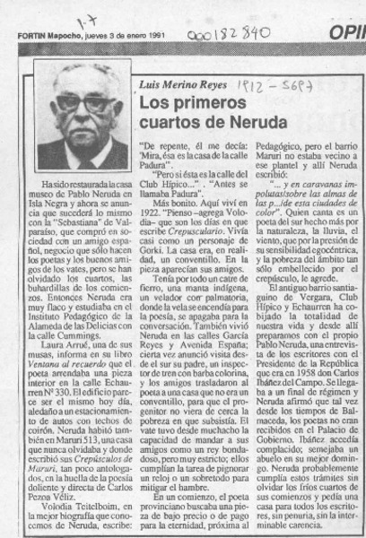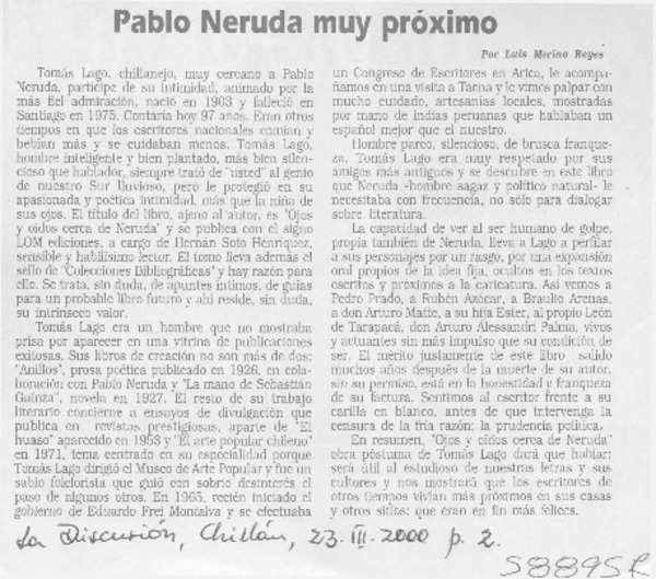 Aproximaciones a Pablo Neruda [artículo] Luis Merino Reyes.