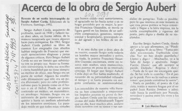 Acerca de la obra de Sergio Aubert [artículo] Luis Merino Reyes.