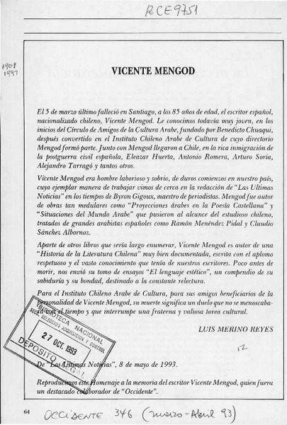Vicente Mengod [artículo] Luis Merino Reyes.
