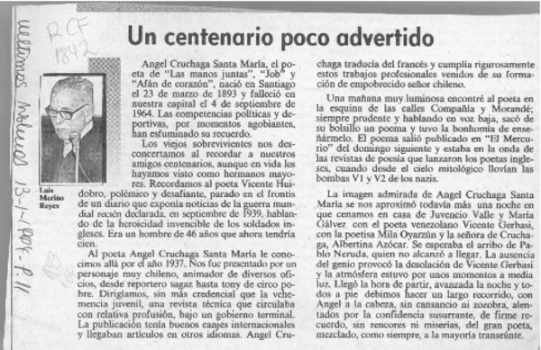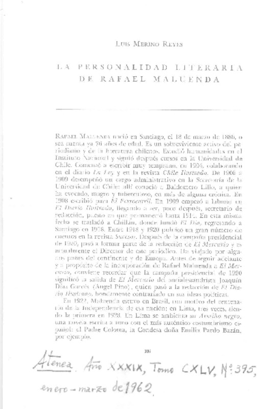Un centenario poco advertido [artículo] Luis Merino Reyes.