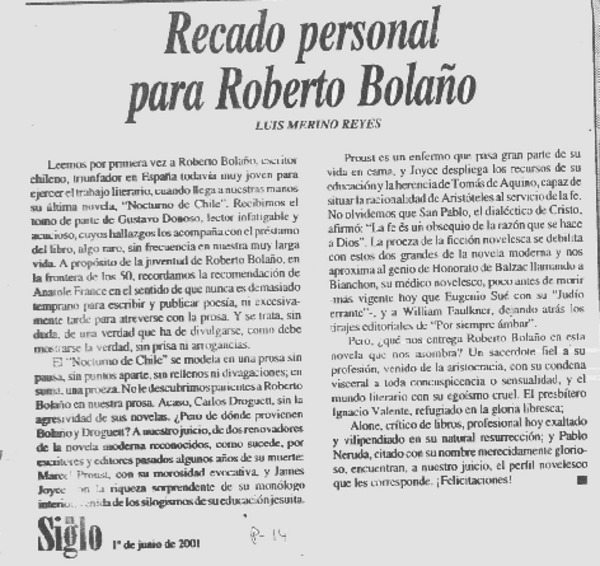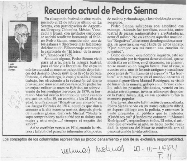 Un recuerdo necesario [artículo] Luis Merino Reyes.