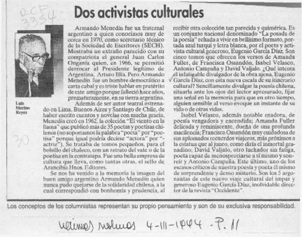 Dos activistas culturales [artículo] Luis Merino Reyes.