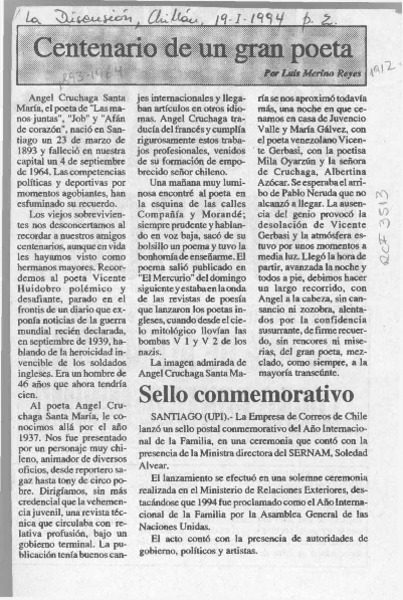Centenario de un gran poeta [artículo] Luis Merino Reyes.