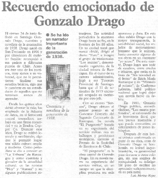 Recuerdo emocionado de Gonzalo Drago [artículo] Luis Merino Reyes.