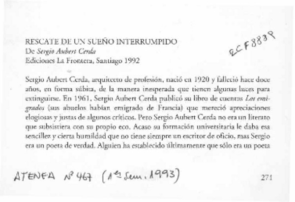 Autores chilenos - Aubert Cerda, Sergio - Rescate de un sueño interrumpido