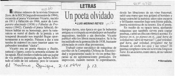 Un poeta olvidado [artículo] Luis Merino reyes.