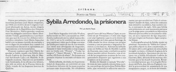 Sybila Arredondo, la prisionera [artículo] Luis Merino Reyes.