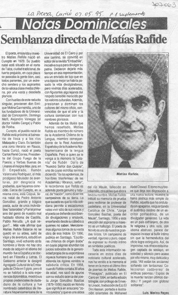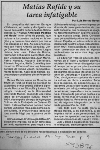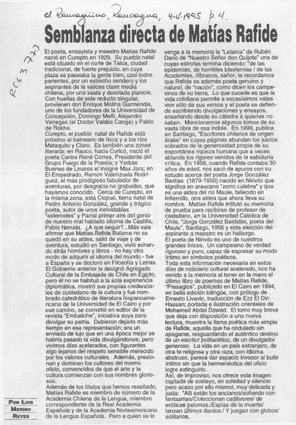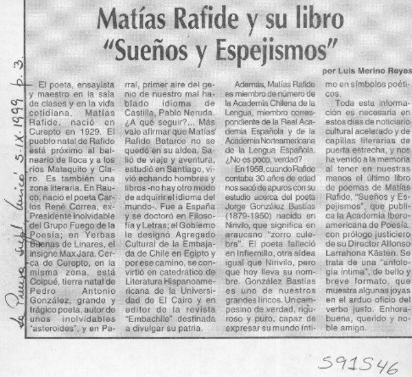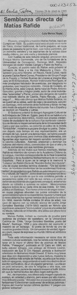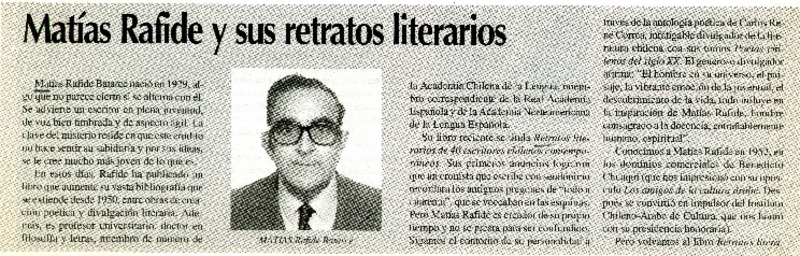 Semblanza directa de Matías Rafide [artículo] Luis Merino Reyes.
