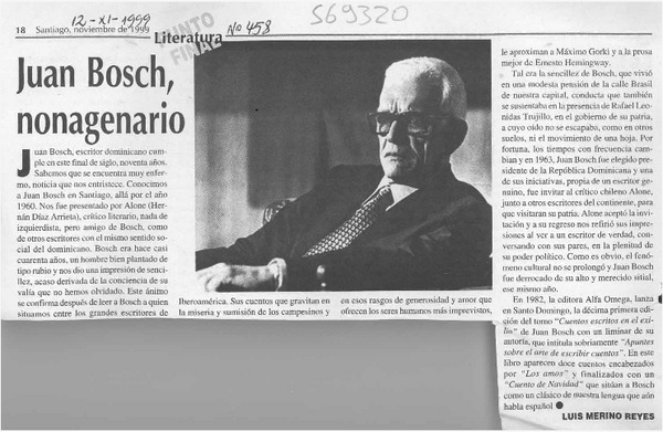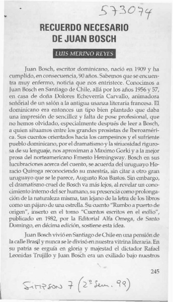 Recuerdo necesario de Juan Bosch [artículo] Luis Merino Reyes