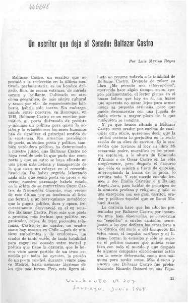 Un escritor que deja el senado: Baltazar Castro [artículo] Luis Merino Reyes.