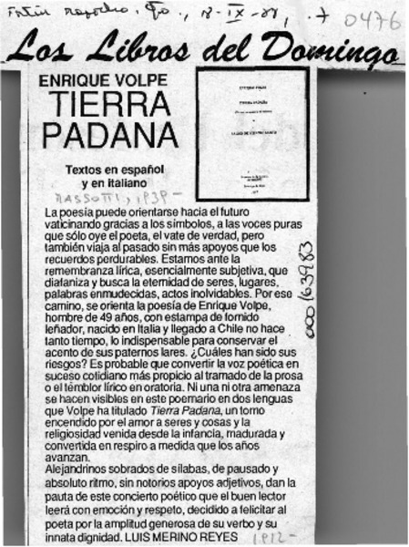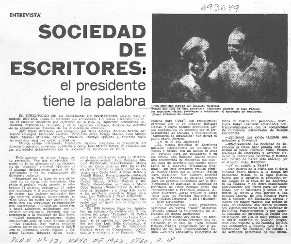 Autores chilenos - Merino Reyes, Luis - [entrevista]