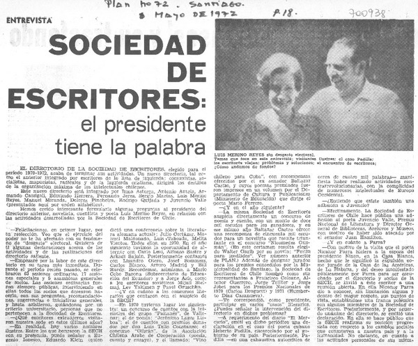 Sociedad de escritores: el presidente tiene la palabra : [entrevista] [artículo] B.A.