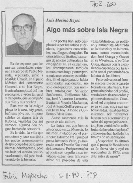 Algo más sobre Isla Negra [artículo] Luis Merino Reyes.
