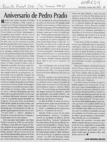 Aniversario de Pedro Prado [artículo] Luis Merino Reyes