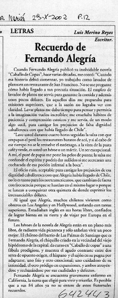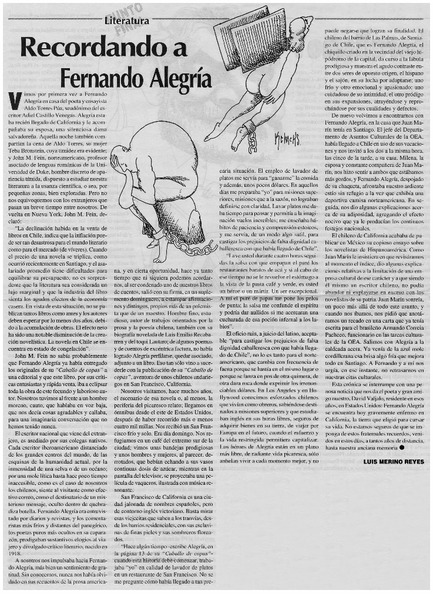 Recuerdos de Fernando Alegría [artículo] Luis Merino Reyes